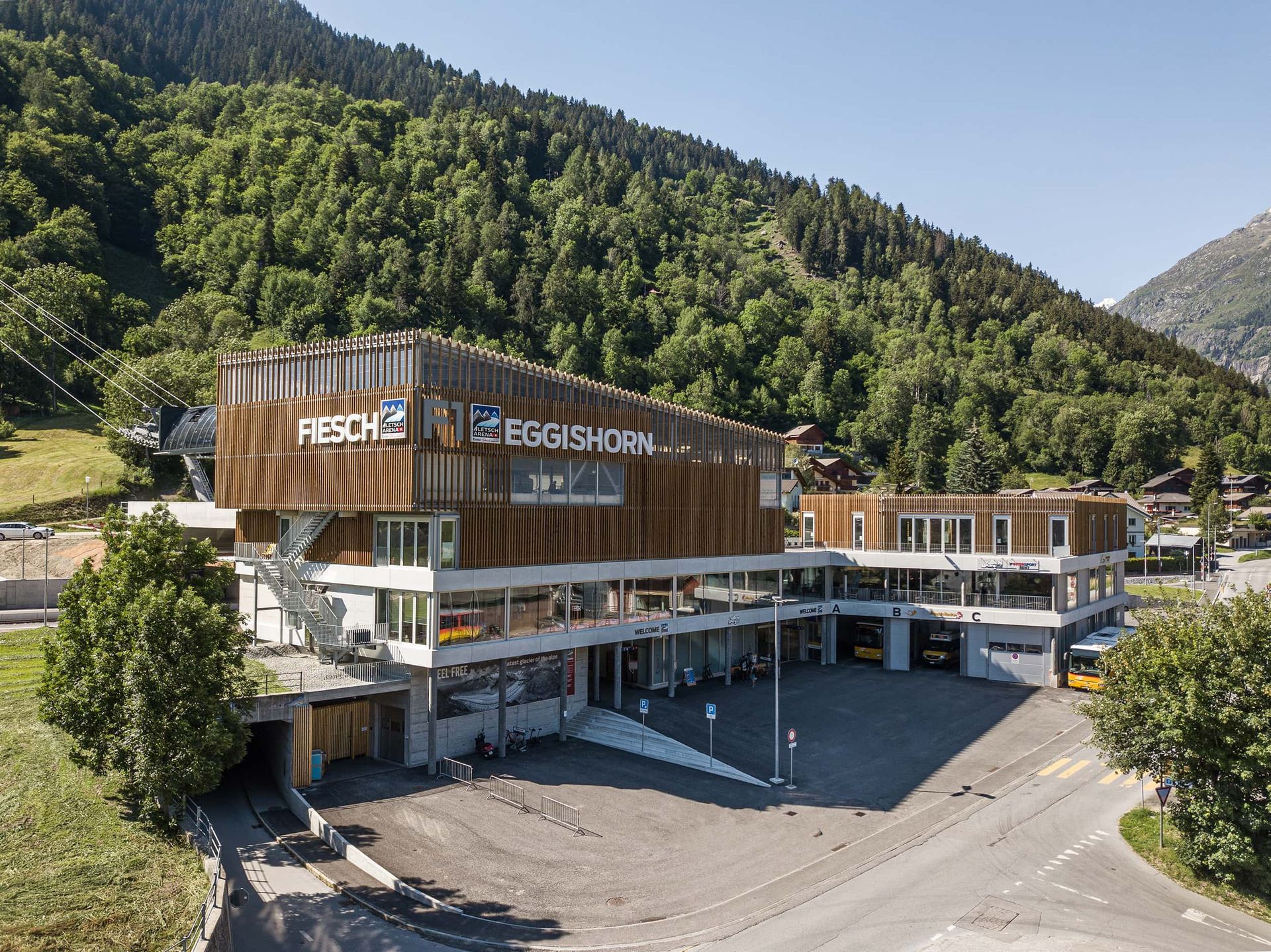 Der Jahrhundert-Bau vereint einen neuen Bahnhof mit Zug- und Bus-Terminal und direktem Zugang zu den Gondeln hinauf auf die Fiescheralp. Der ÖV-Hub beinhaltet einen komplett neuen Bahnhof der Matterhorn Gotthard Bahn (Station Fiesch). Die Aletsch Bahnen AG integrieren die Talstation der neuen 10er Gondelbahn zur Fiescheralp. Spiess Metall- und Torbau AG durfte 4 Industrie-Sectionaltore und 1 Industrie-Faltschiebetor mit einer Breite von 10 Meter montieren. Um den Betrieb störungsfrei sicherzustellen, haben die Aletsch Bahnen einen Wartungsvertrag bei uns abgeschlossen. Weitere Infos unter: https://www.aletscharena.ch/quicklinks/ueber-uns/aletsch-bahnen-ag/oev-hub-fiesch/